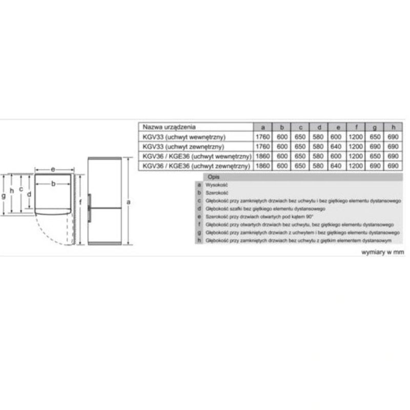 Thông số kĩ thuật Tủ Lạnh Bosch KGW36XL30S